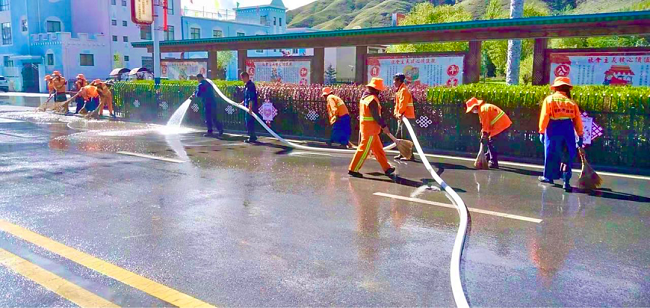同時(shí),根據(jù)各道路實(shí)際情況,貢嘎項(xiàng)目部在不影響市民的正常出行,避免對(duì)交通造成影響的同時(shí),創(chuàng)新清掃作業(yè)模式,增加灑水次數(shù)和區(qū)域,提高道路保潔作業(yè)頻次,提高保潔質(zhì)量,做到“二到邊”,日常保潔到墻邊,灑水沖洗到路邊。