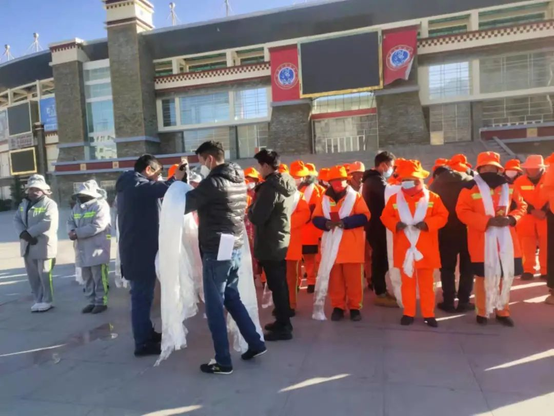 1月7日,為表達對國策一線環(huán)衛(wèi)工人的關懷和祝福,林芝市慈善總會在工布公園工布廣場開展了“寒冬送溫暖 致敬城市美容師”送冬衣活動?;顒蝇F(xiàn)場,市慈善總會工作人員為50名環(huán)衛(wèi)工人敬獻哈達,并送上慰問冬衣。